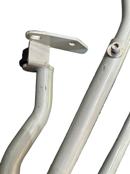 -3/4” dia., powder coated, solid steel, cross bar tying the two sides together for increased rigidity.