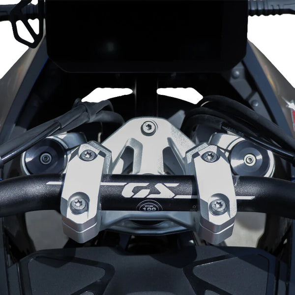 The BMW R1300GS Block Riser is an OEM styled block riser specifically engineered to fit the contours and handlebar mount angles of the stock BMW clamps. It is a 1 3/8" vertical rise and 1" horizontal offset towards the rider. resulting in a 1 11/16" diagonal rise toward the rider.